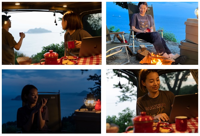 朝起きて庭先のクルマのエンジンをかけると、自然と仕事のエンジンもかかる。貸別荘を出て淡路島の海岸線を走らせながら、今日一日の仕事の構想を思いめぐらせる。潮騒の聴こえるちょうどいい浜辺を見つけたら、クルマを停める。そこが、今日の仕事場になります。